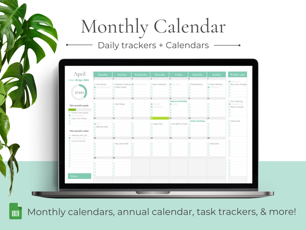 ✤ 12 monthly calendars – Build task checklists and enjoy automated tracking, all integrated within monthly calendars.