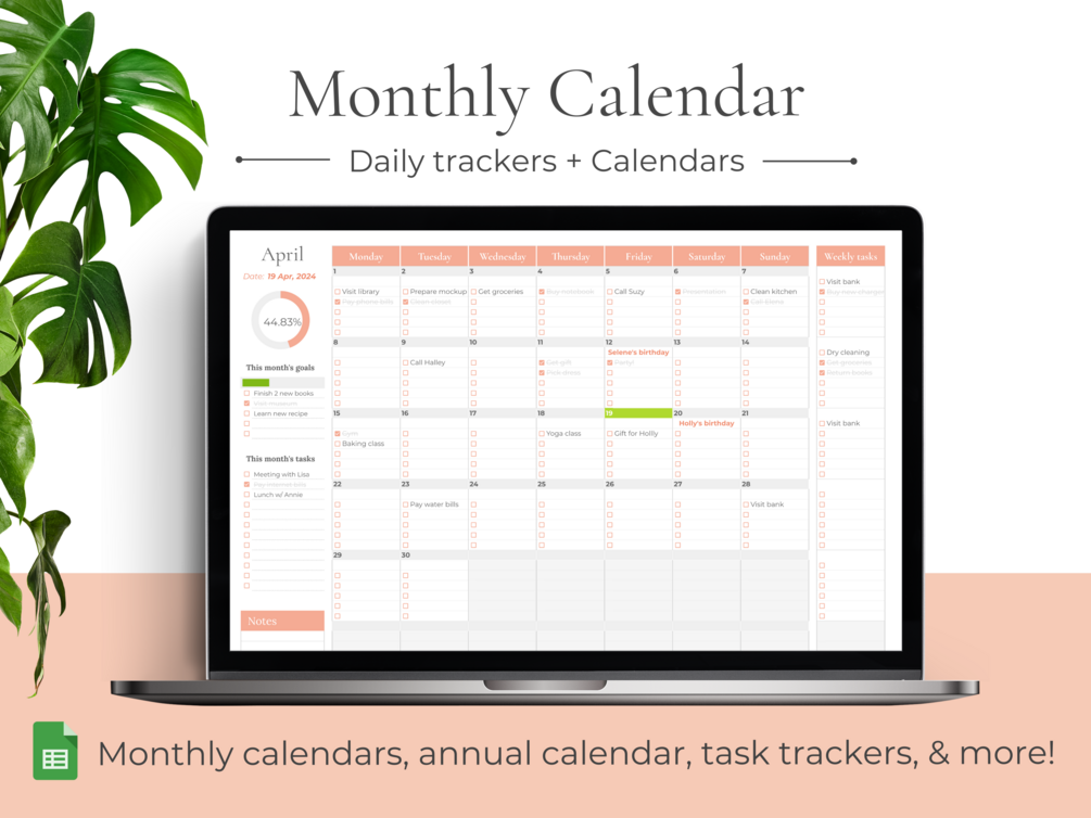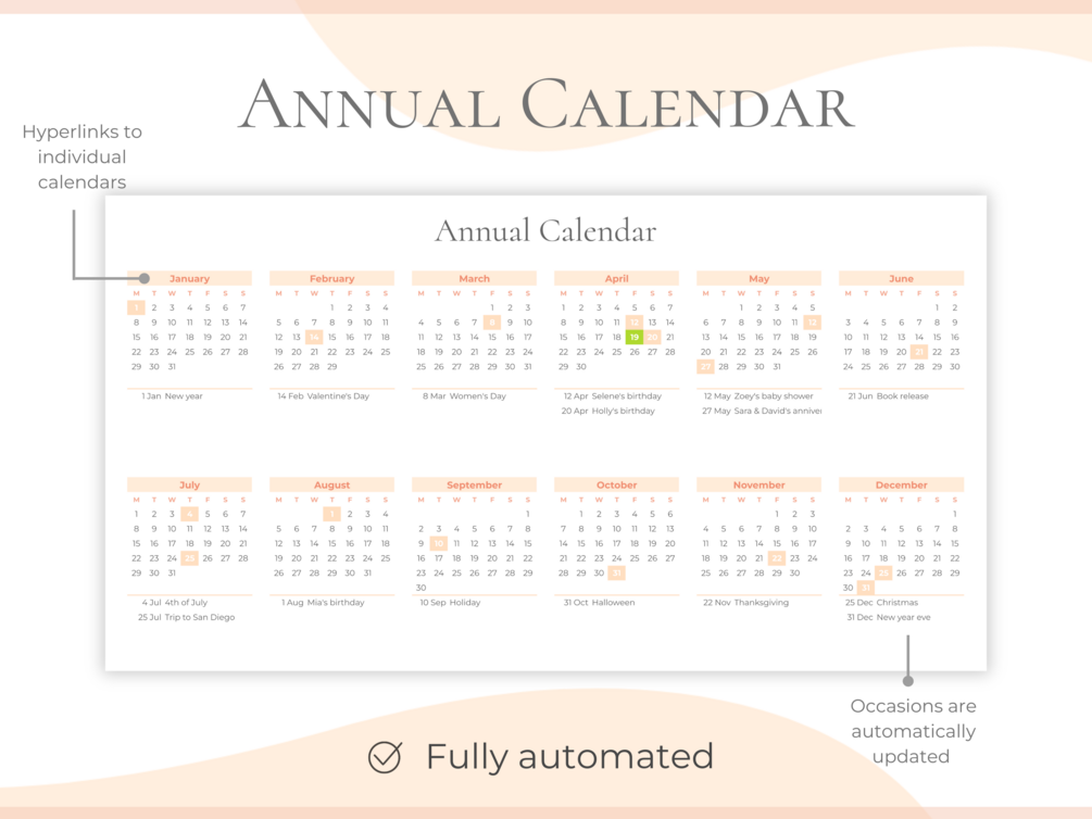 ✤ 12 monthly calendars – Build task checklists and enjoy automated tracking, all integrated within monthly calendars.