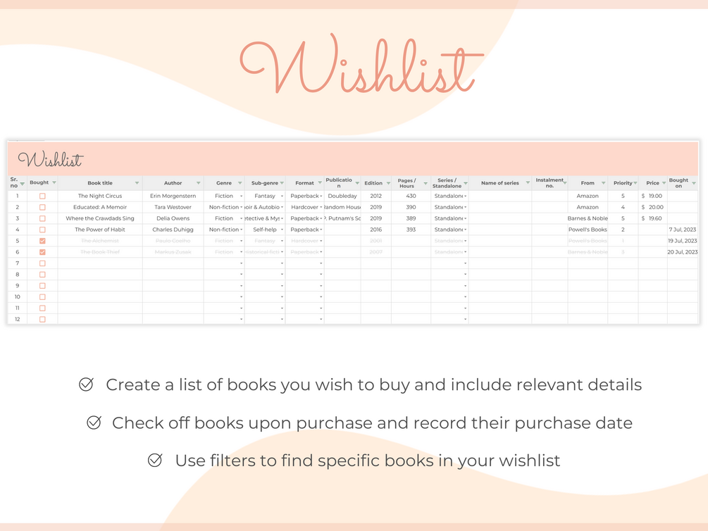 ✤ Wishlist – Maintain a wishlist of books you want to add, complete with relevant details.